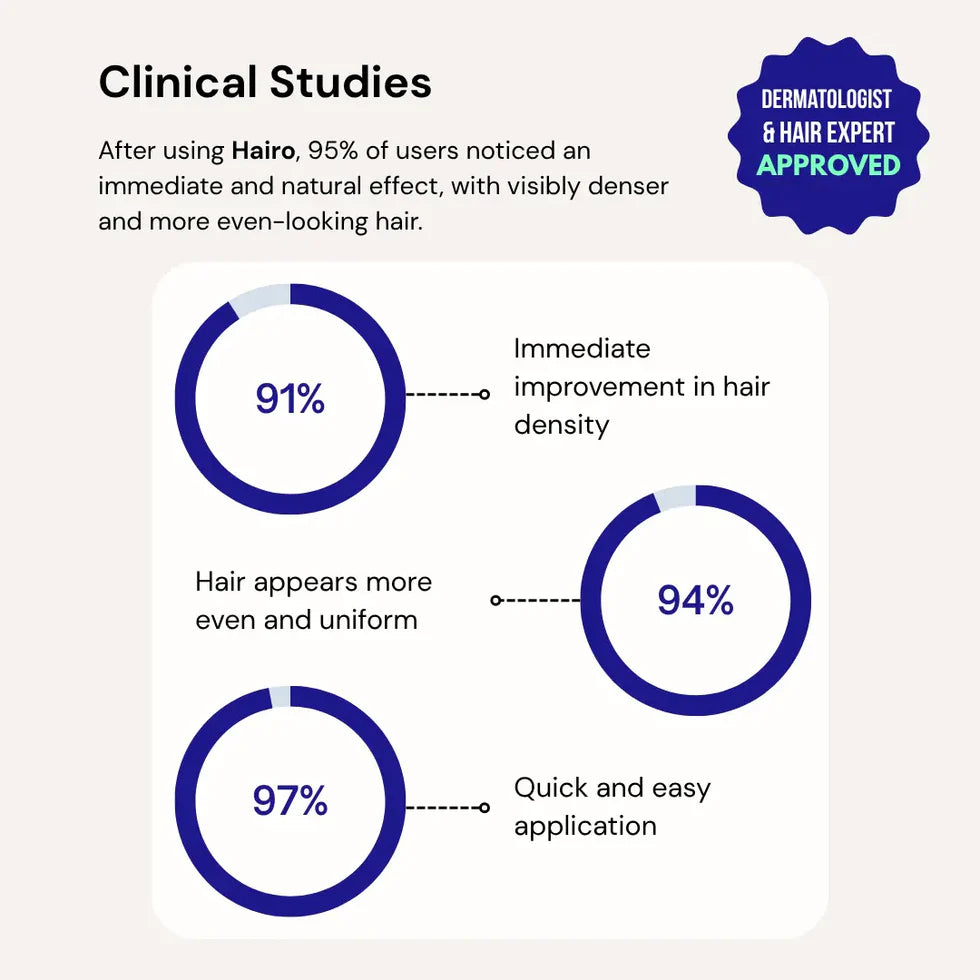 Even areas that look completely bare still have ultra-fine or light hairs that are invisible to the eye. HAIRO's pigments lock onto these microscopic hairs to fill gaps and create natural density. This is how you get seamless coverage, even with advanced hair loss.